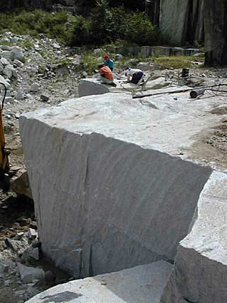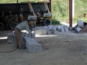 当社の採石場です。うちの山で採掘される稲田御影石は青みがかった白い石で光沢に富み美しいです。