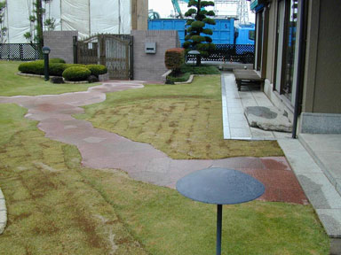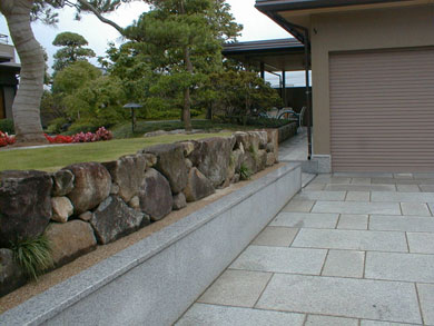 | 飛石(鉄平石、筑波石)から石張アプローチへの改修工事です。 |