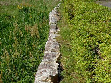 東日本大震災に耐えた石積み土留め、耐えたけど地面が動いた。