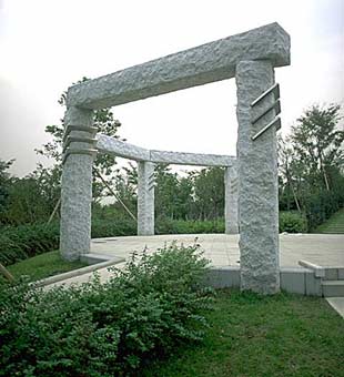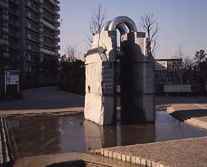 | 草加公園に設置されておりますモニュメント。 稲田御影石とFGです。 | ||||