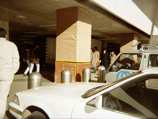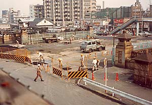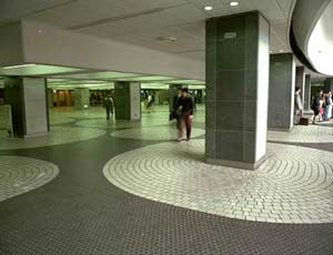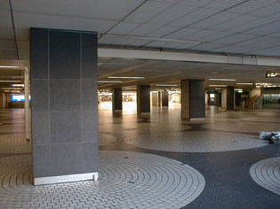 | 新宿西口ロータリーの柱 黒はFG、白は稲田御影石です。 |