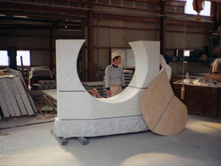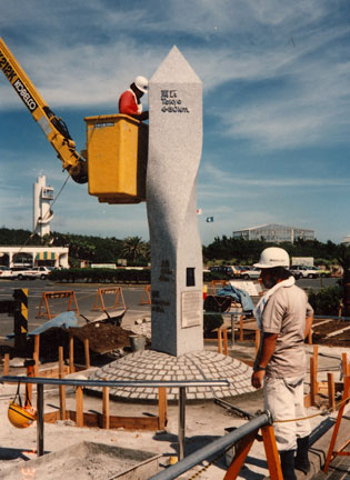 | えー!これって? 南房パラダイスの道しるべです 三角柱をひねって六面? 硬い石がこんなきれいなラインを出せるんですね。 まだ国産加工が当たり前の時です。 当社の前身であります (株)昭和石材社施工 S62年度 |