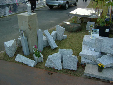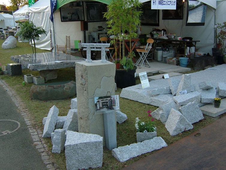 |  | ストーンフェスティバル’08が無事終了しました。 石工事がメインの当社は何を展示するか今回も頭を 痛めました。 今回のメインは大判の敷石(1,450×3,700)採掘か ら加工、施工迄を一貫しております当社ですが、こ れだけの大判の物は中々採取出来ませんので、声を 大にして自慢したいのですが、何気なく展示。 趣向の問題ですから。施工に当り注意してる事は、 石積み(自然石、間知石、割石による乱積み)石張り も、建物又周囲の雰囲気、環境も含め考えて行って いる事です。又、今では本当に数少なくなってしま ったタタキ加工ができる職人もおります。 職人の高齢化に成りつつ現在、その技術をどう繋い で行くかが課題となってます。流通の大部分が輸入 材です。 一般家庭に普及され17、8年が経ちました。 それ迄は石はどれでも同じというお声から、いや、 どうも違うよ。と、ようやく質感が国産材と違うと 言う声を耳にするようになりました。どうぞ、よく 聞いて、見て、考えて工事に踏み切って下さい。 | ||