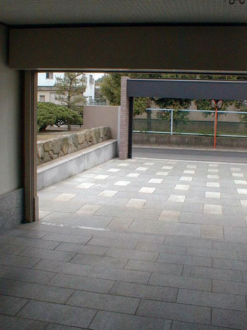門扉廻りにあわせ赤御影石、叉は駐車場に合わせ白御影石でと御提案しました。