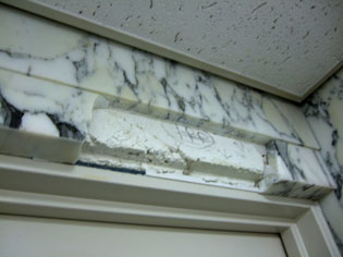 ドアの上枠です。亀裂が入ってしまい応急処置をしてましたが工事をする事となりました。