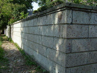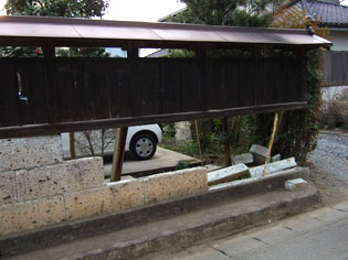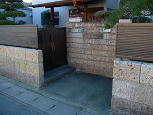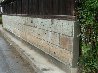 | 板塀下部の大谷石積み材の一部落下の修復工事 |