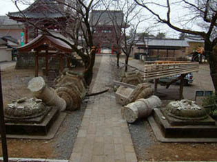 小柱等も地震でずれたり、敷石等も目地切れがあったりと大きなダメージはは無かったものの・・・。